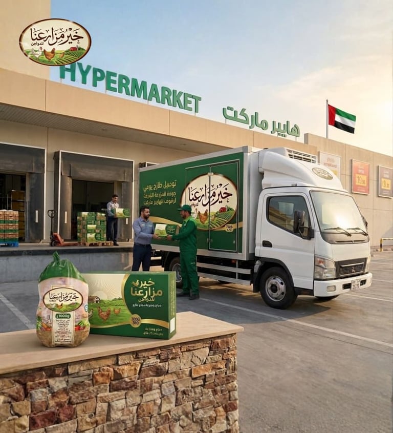 شركة خير مزارعنا للدواجن الفريش هي شركة متخصصة في توريد وتوزيع الدواجن الطازجة عالية الجودة في دولة الإمارات العربية المتحدة، أبوظبي - العين حيث تسعى إلى تلبية احتياجات الأسواق والمطاعم والفنادق والمتاجر بأفضل معايير الجودة والسلامة الغذائية.